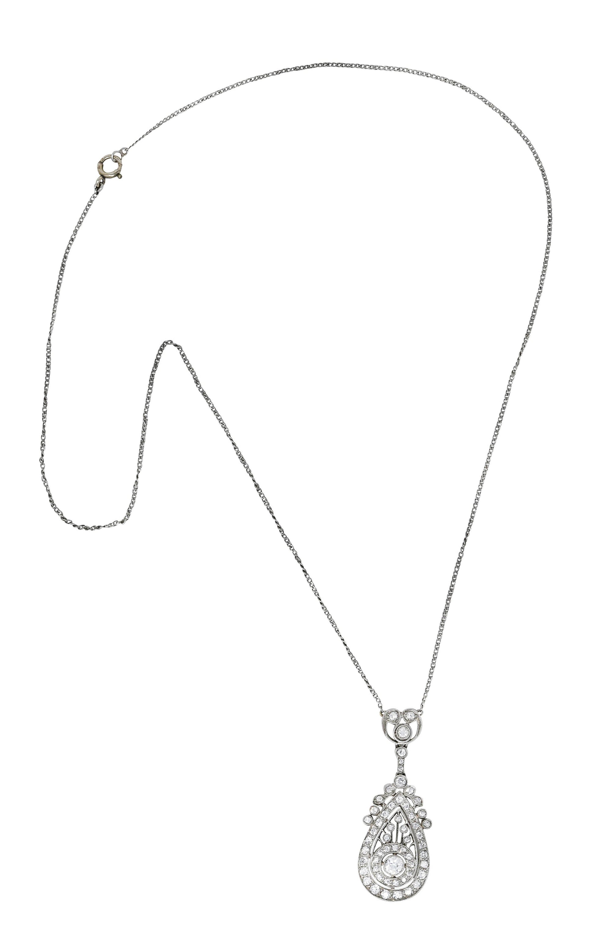1910 Edwardian 1.00 CTW Diamond Platinum Drop Necklace