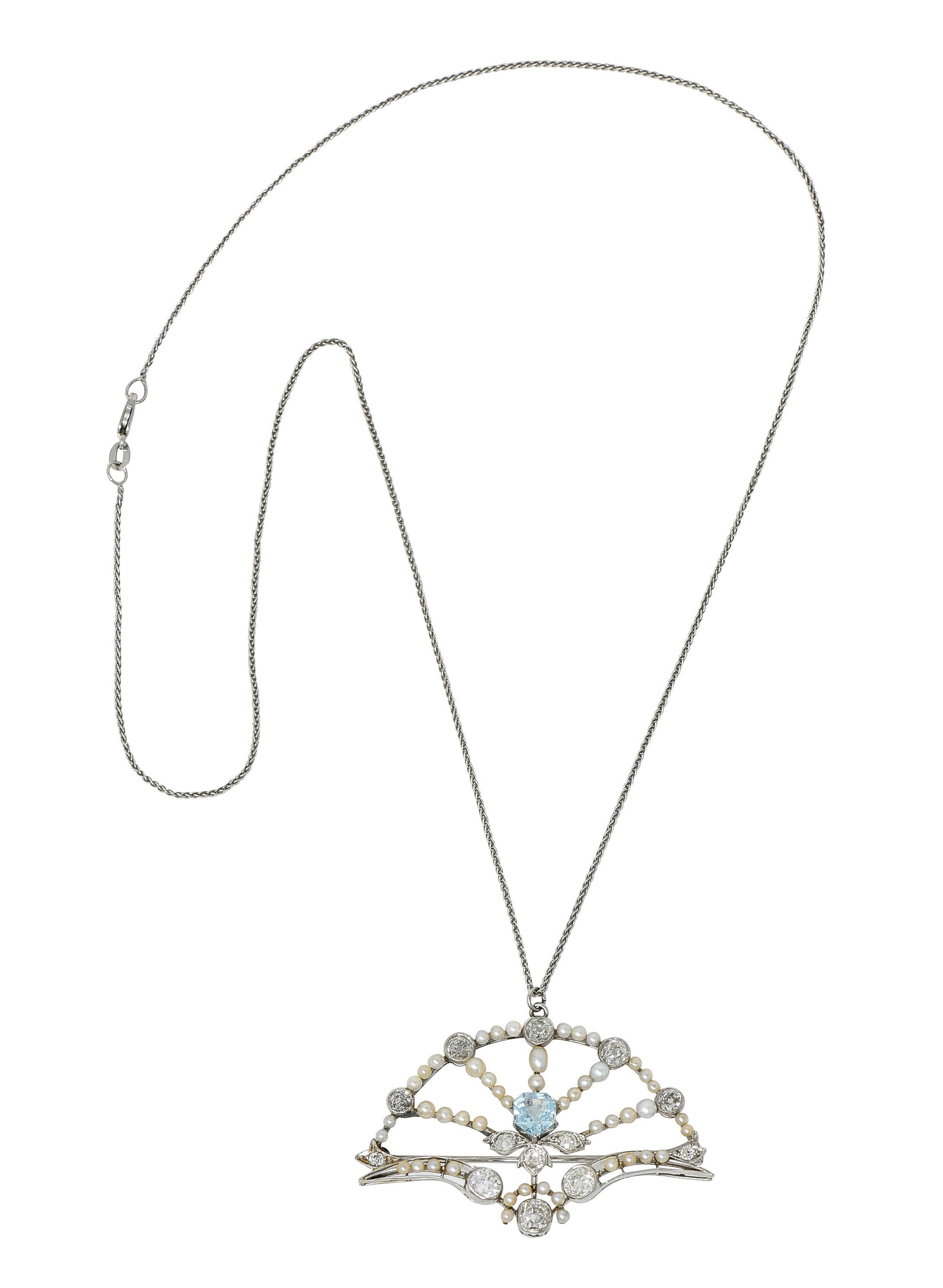 1910 Frank Walter Lawrence Pearl Diamond Platinum Fanned Pendant Brooch Necklace