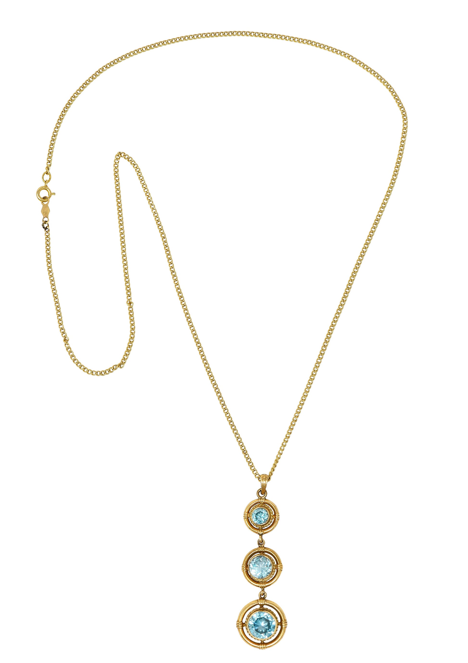 1930's Art Deco Blue Zircon 10 Karat Gold Drop Pendant Necklace