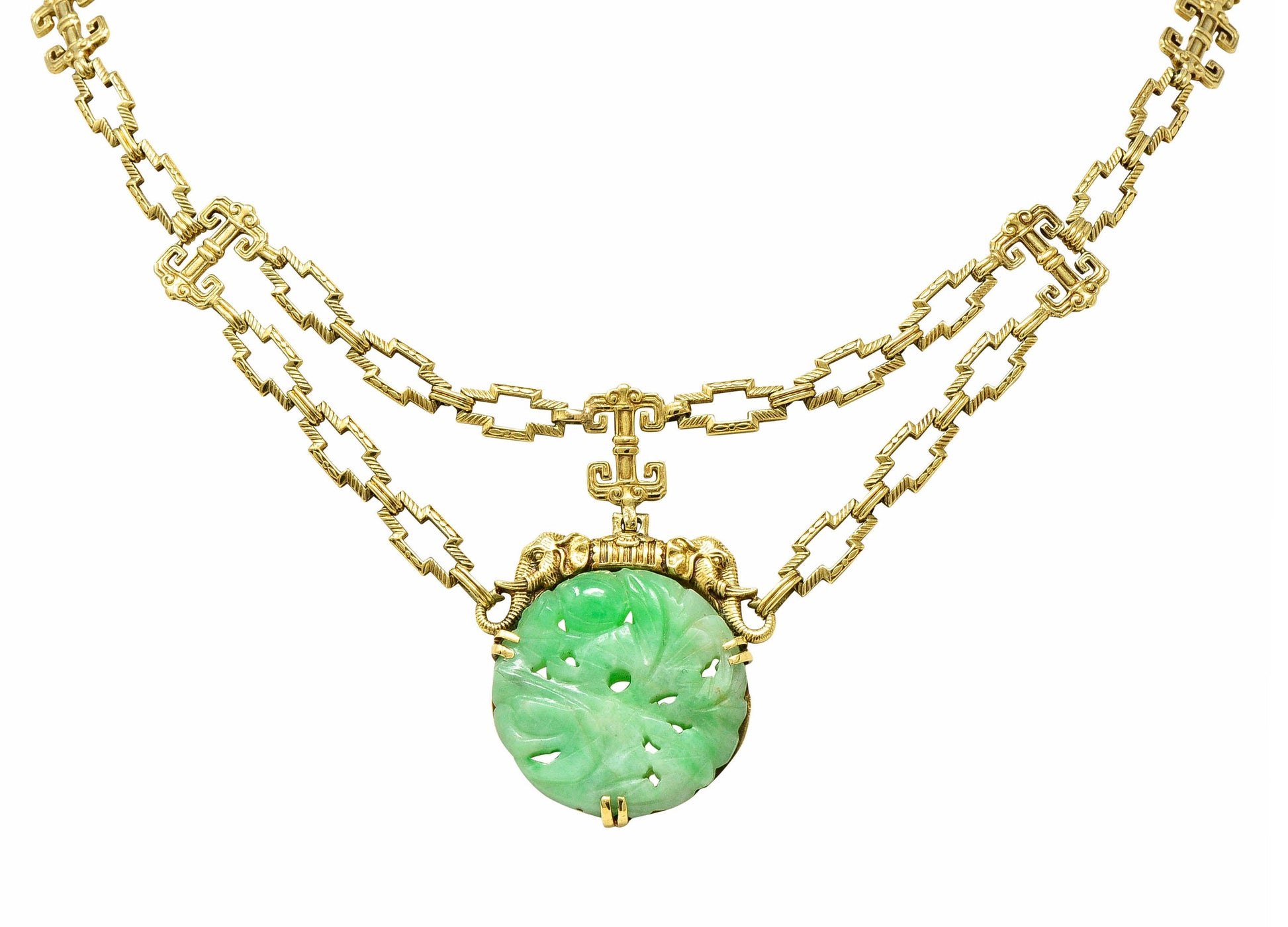 1920's Art Deco Carved Jade 14 Karat Gold Swag Necklace