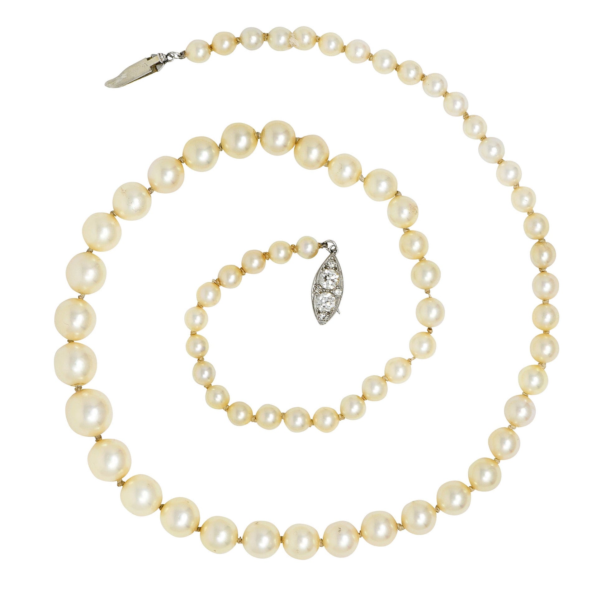1930's Art Deco 0.50 CTW Diamond Pearl Platinum Strand Necklace
