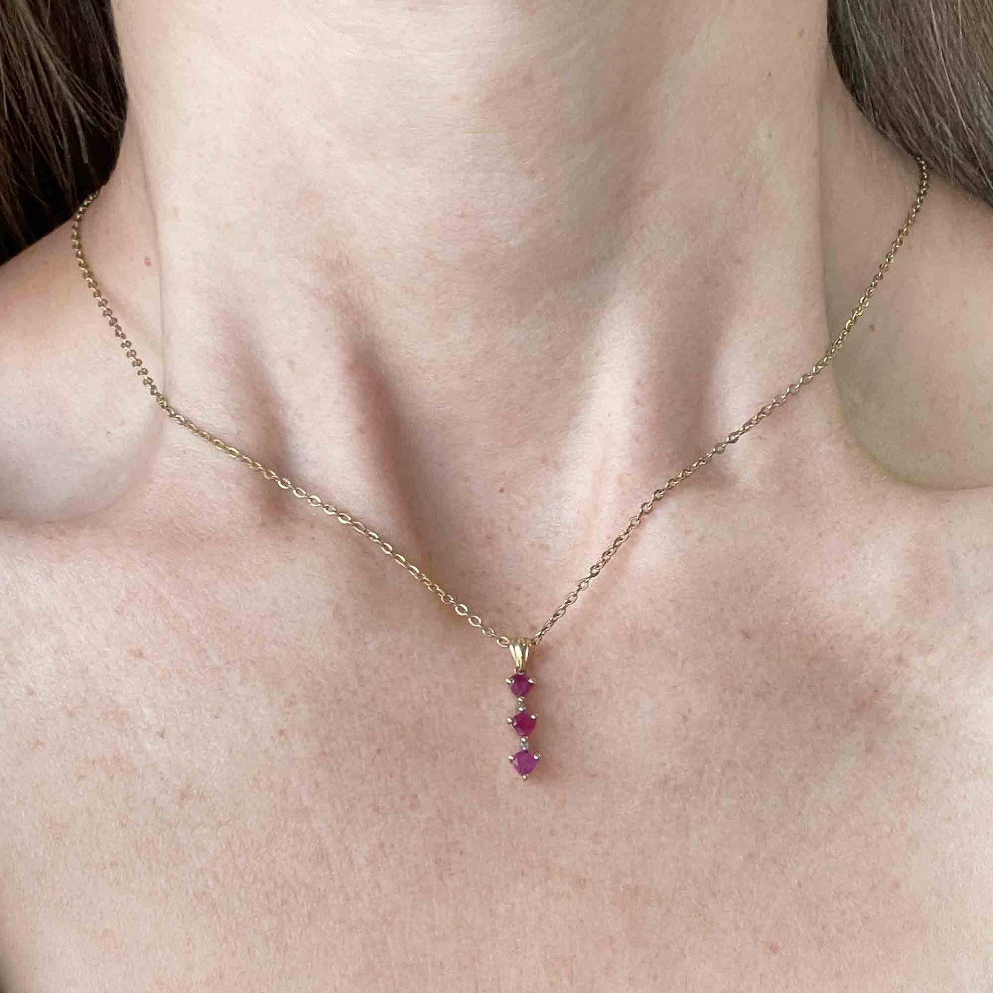 10K Gold Diamond Ruby Journey Pendant Necklace