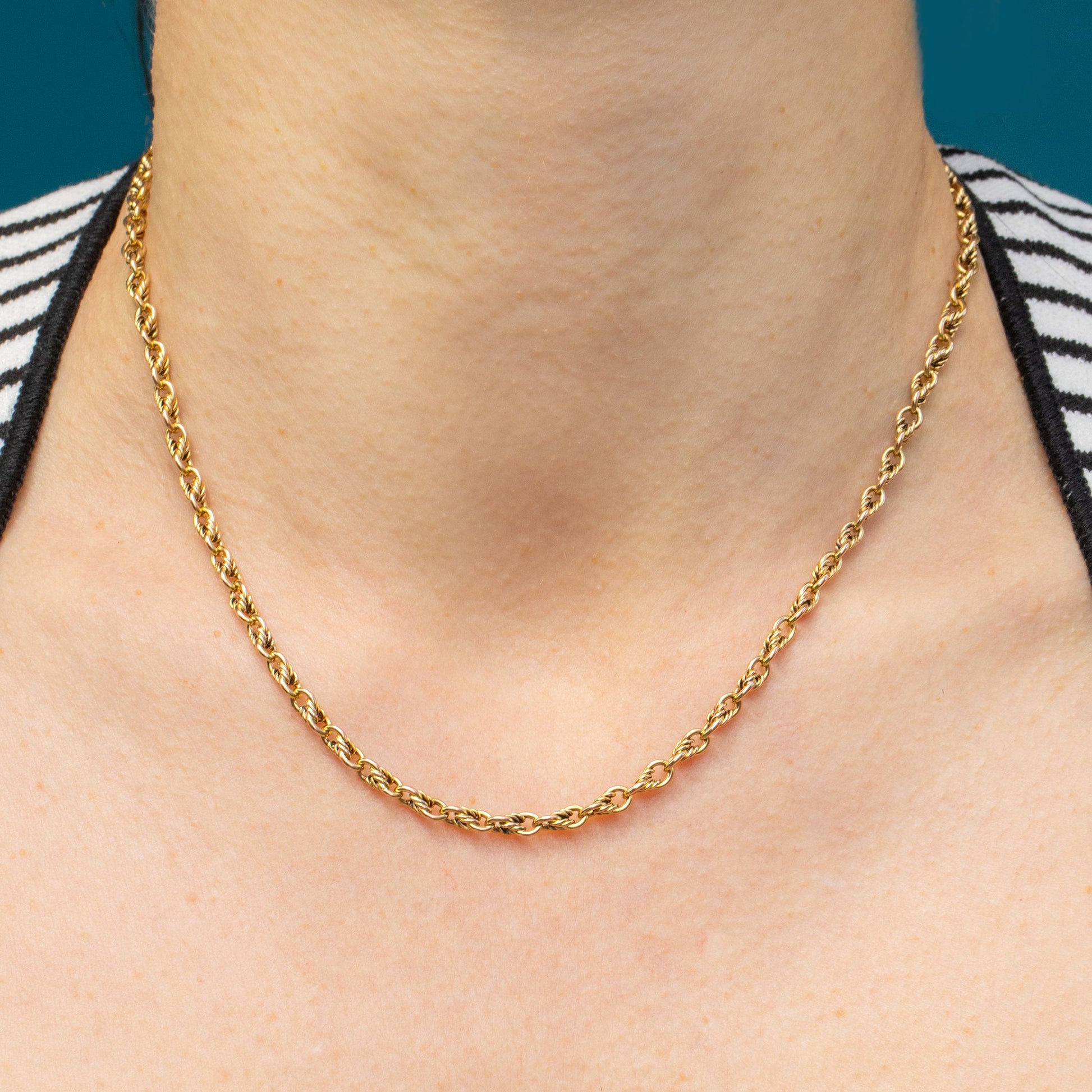EXCELLENT. This 16 antique 9ct Gold lovers knot link chain is in excellent condition. The lover's knots are all perfectly formed and create a wonderful fluidity that drapes across your neck effortlessly.