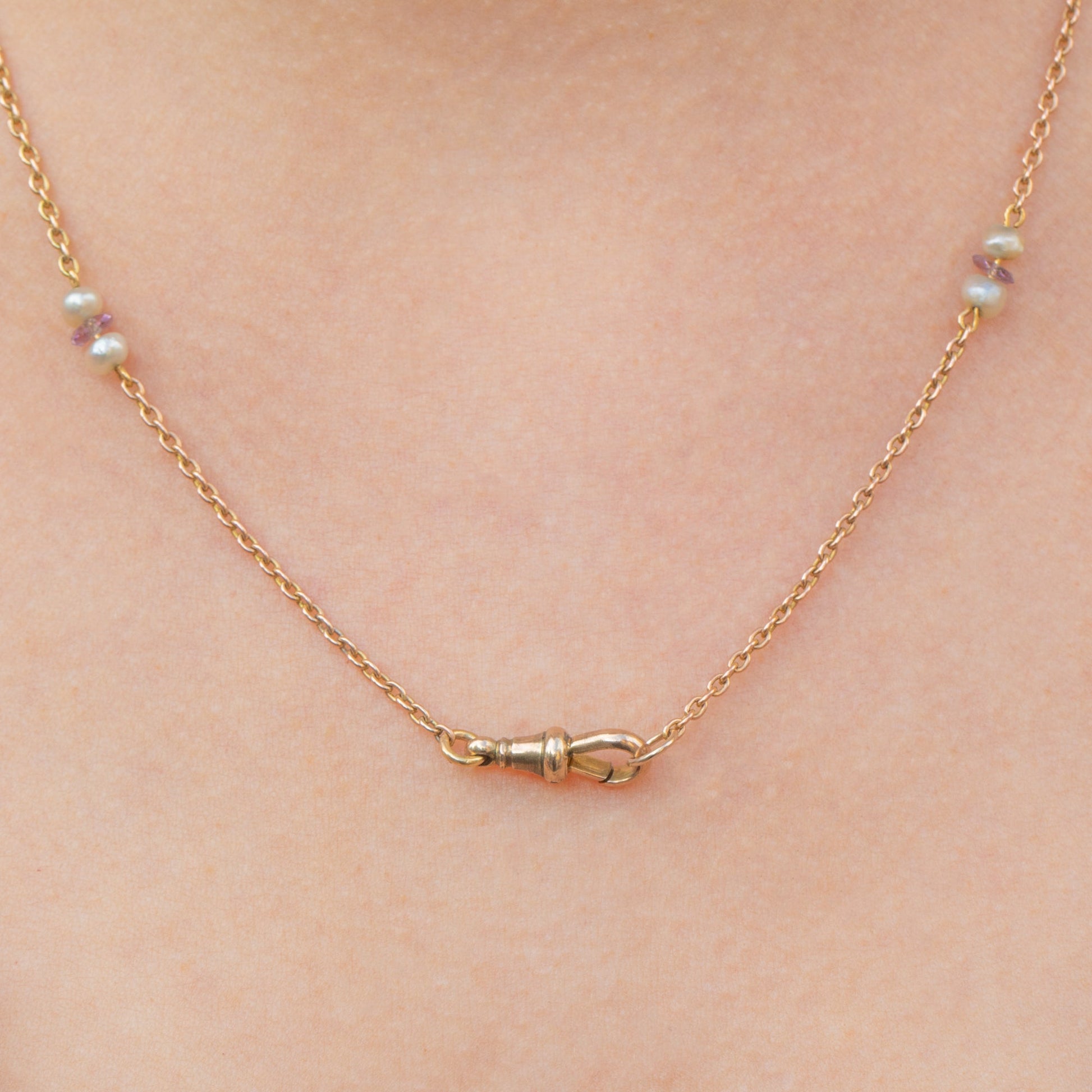 18 Antique Gold Pearl Amethyst Chain, with Dog-Clip