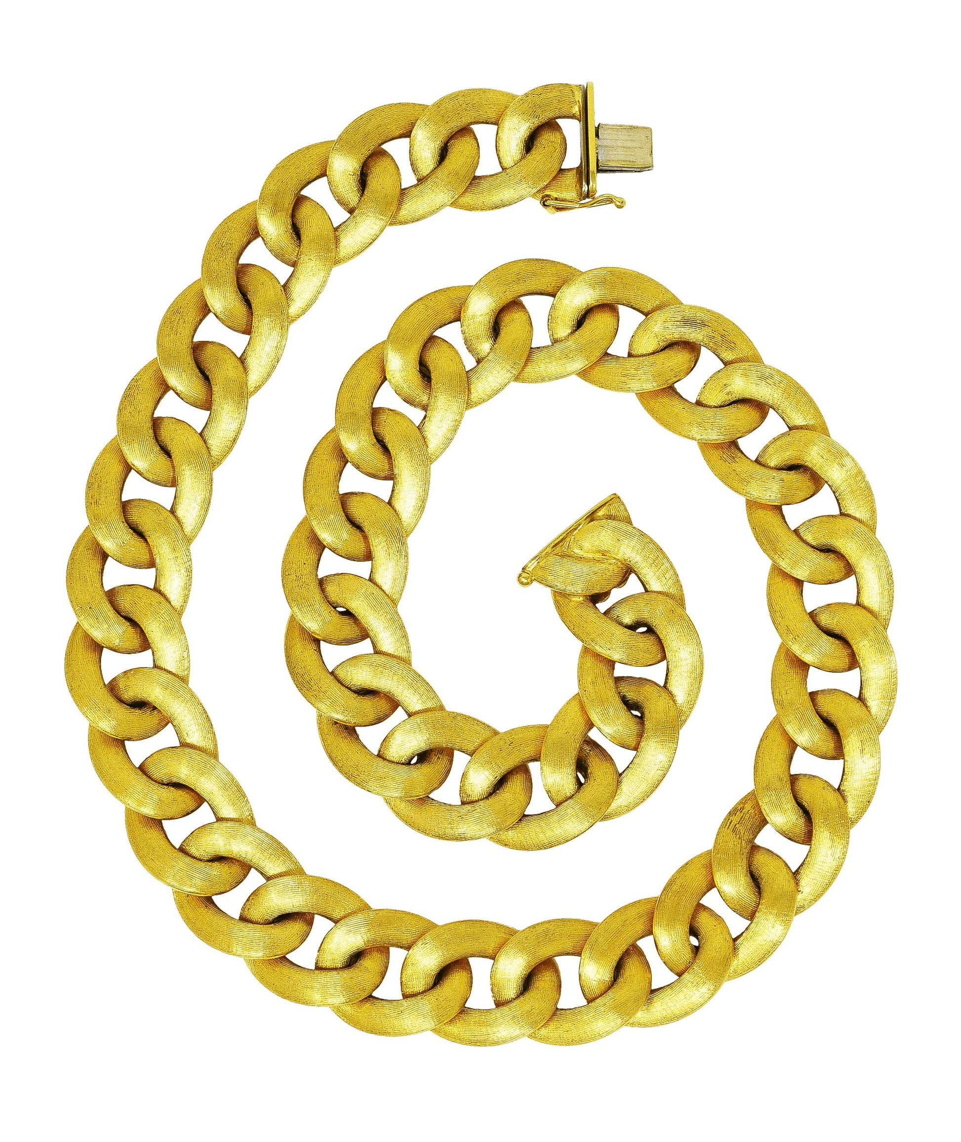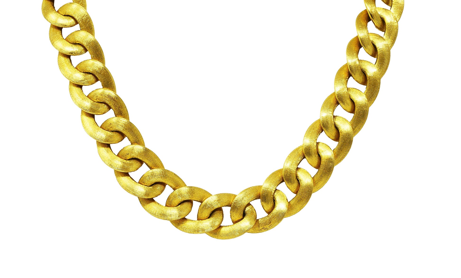 18 Karat Yellow Gold Brushed Curb Link Vintage Chain Necklace