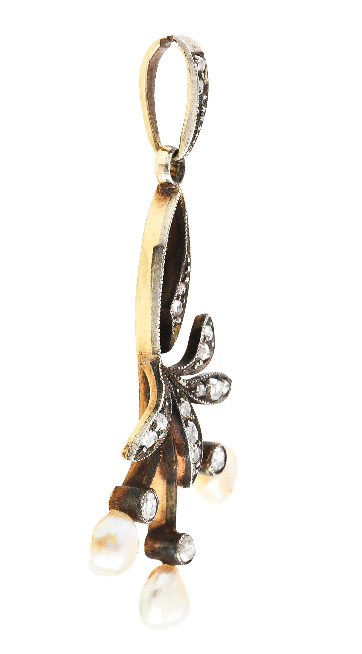 1860's Victorian Diamond Pearl Silver-Topped 18 Karat Gold Berry & Foliate Pendant