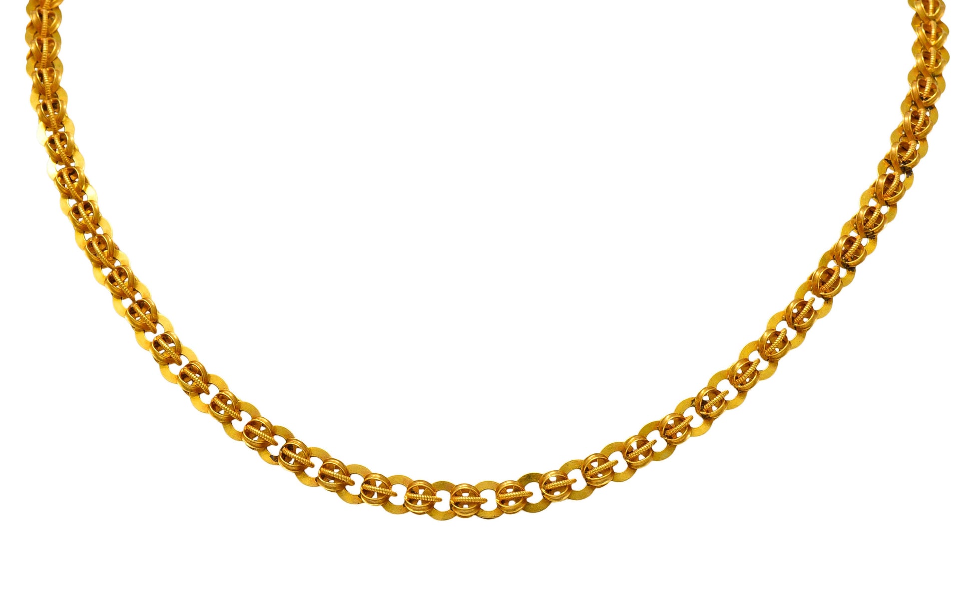 1890's Victorian 14 Karat Gold 19 Inch Circular Chain Link Necklace