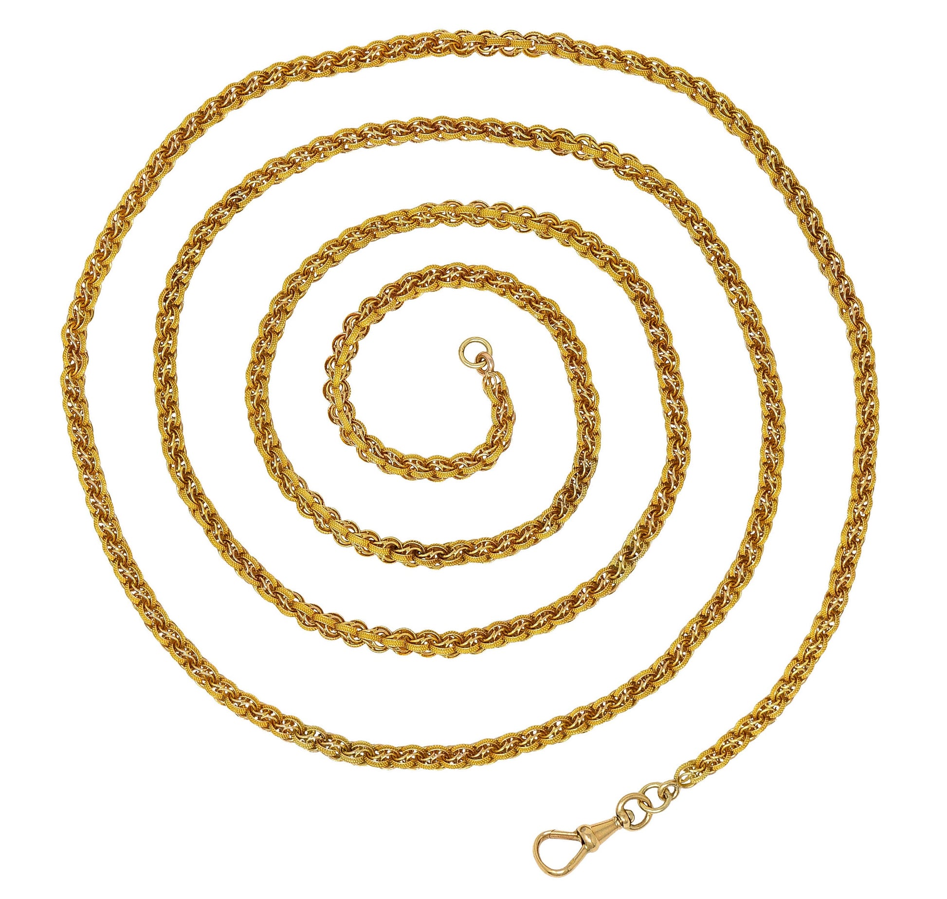 1890's Victorian 14 Karat Gold 44 Inch Long Chain Link Necklace