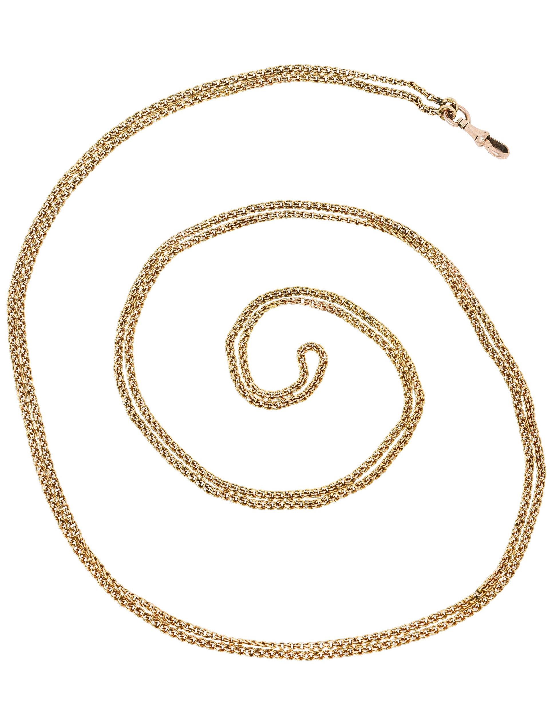 1900 Russian Victorian 14 Karat Yellow Gold 59 Inch Long Curb Chain Lariat Necklace