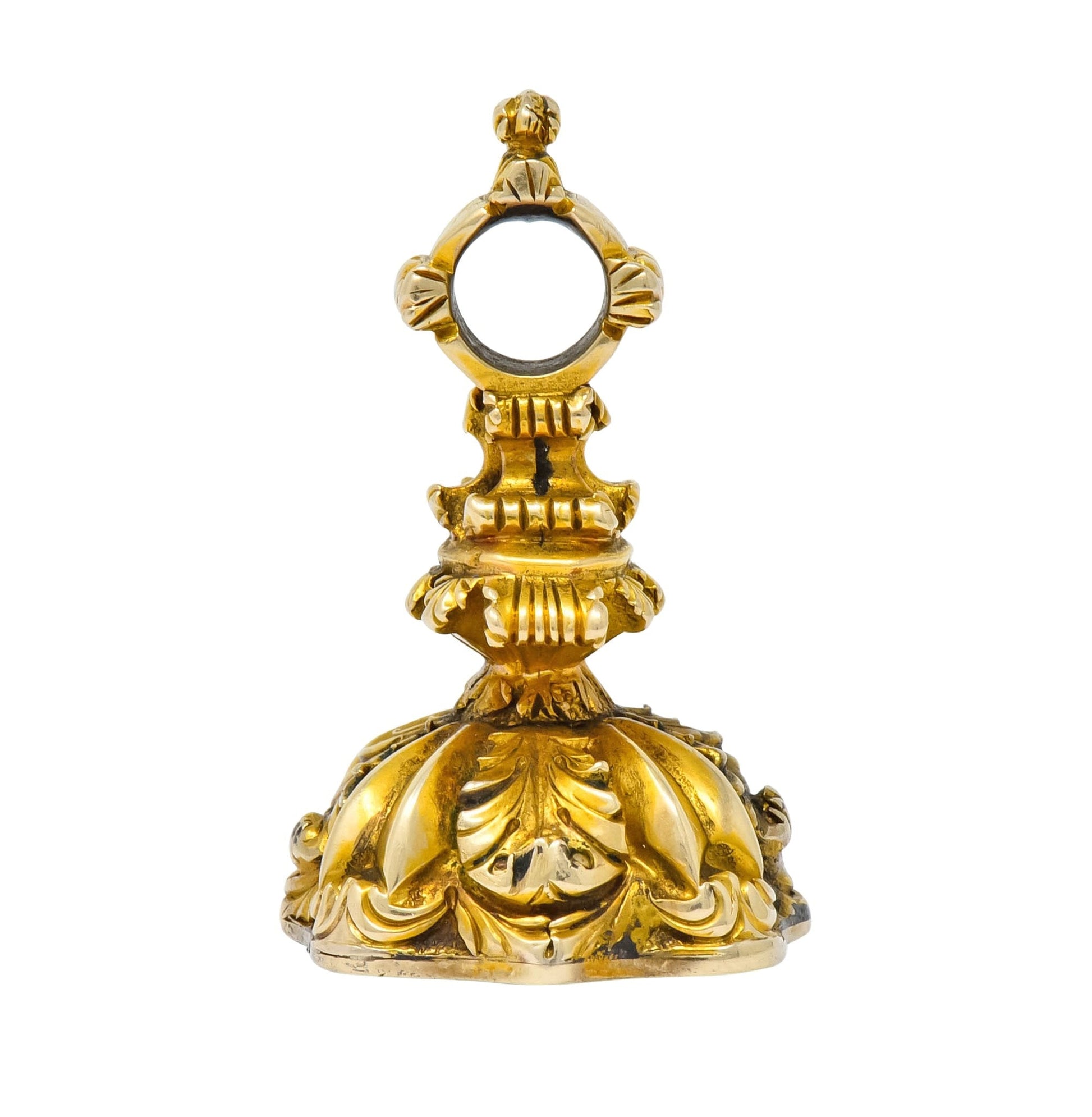 1900's Victorian Bloodstone Intaglio 14 Karat Gold Pheasant Fob Pendant