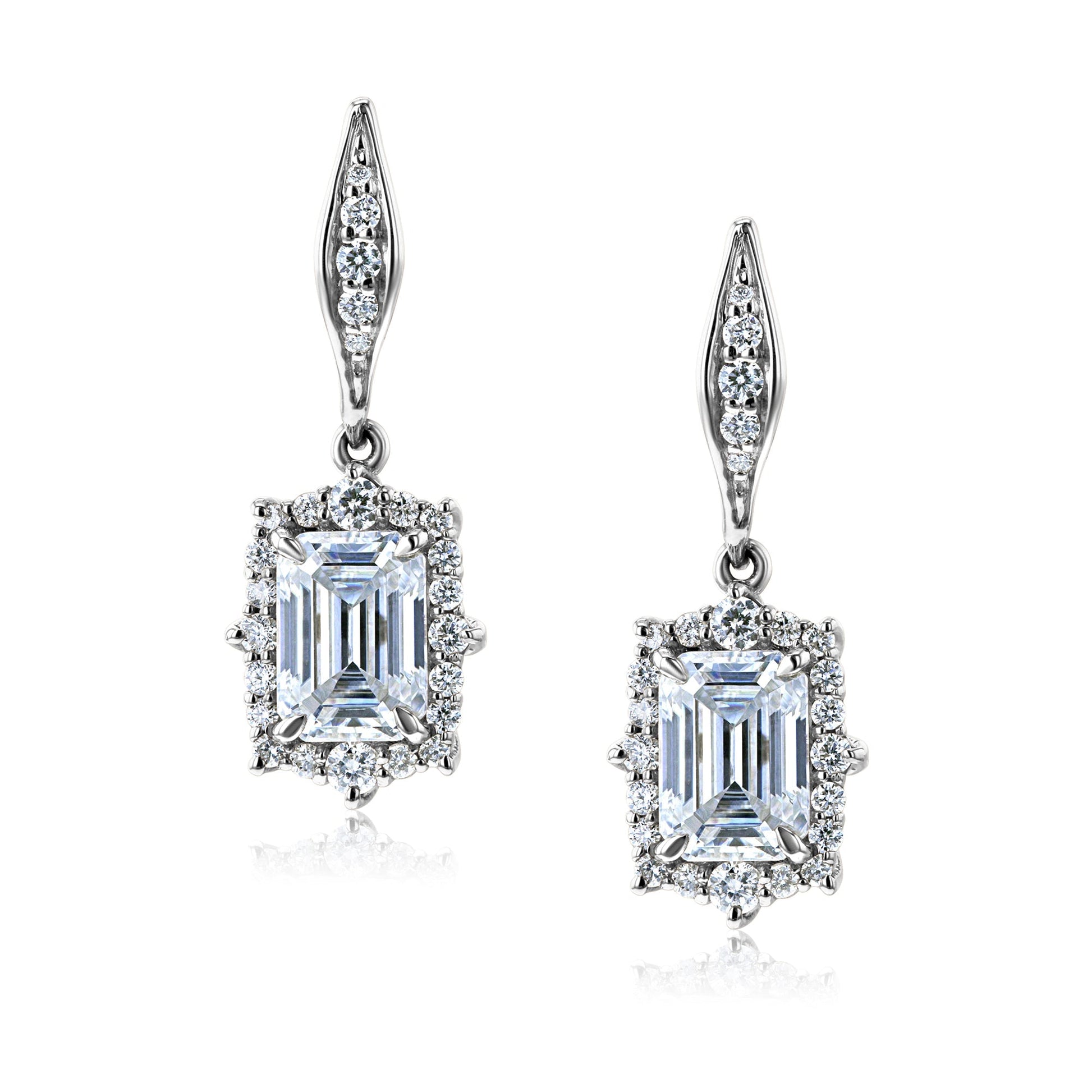 Elizabeth Earrings - 2-1/2ct.tw Emerald Moissanite with Lab Grown Diamond Halo Earrings
