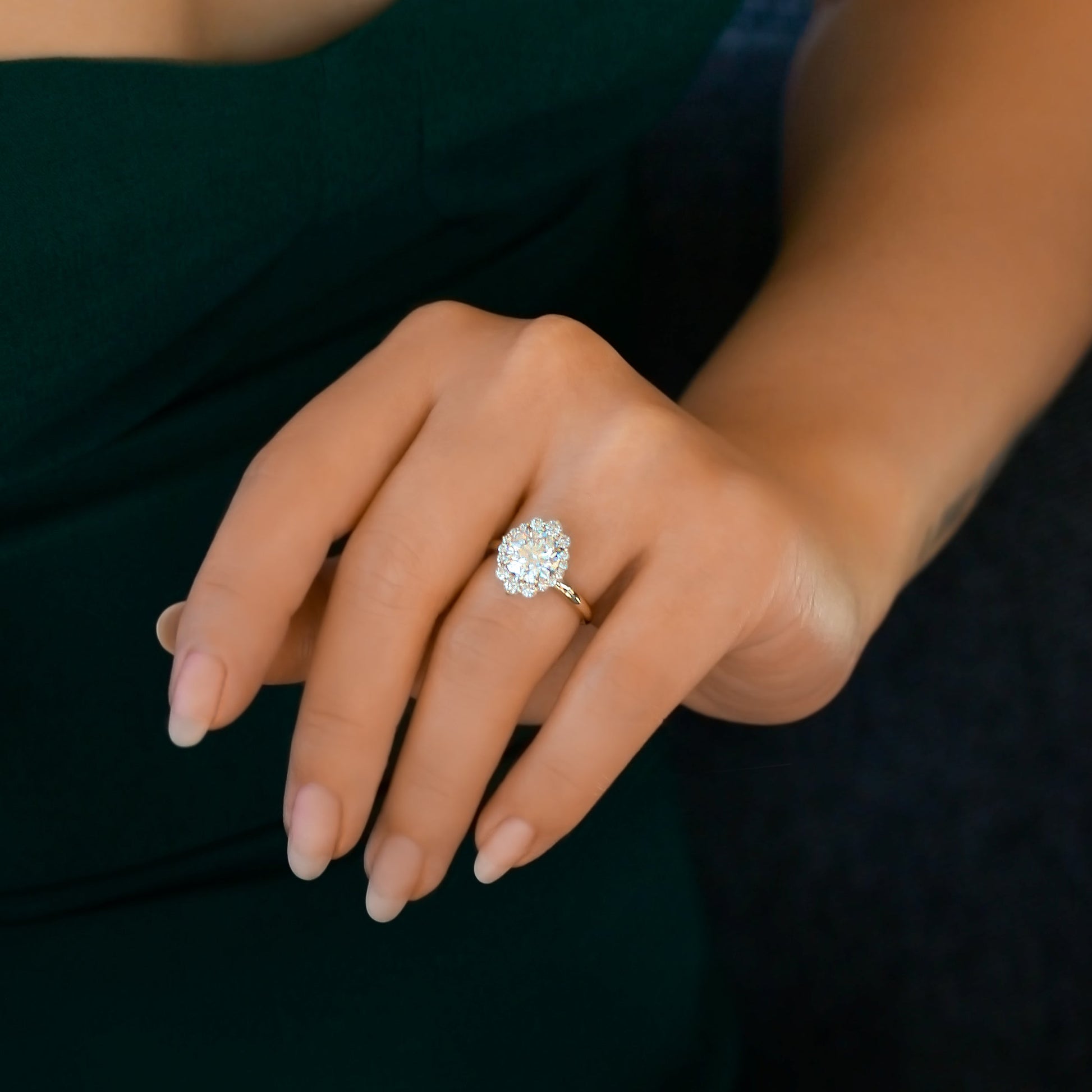 Raphaela - Round Moissanite with Lab-Grown Diamond Halo Engagement Ring