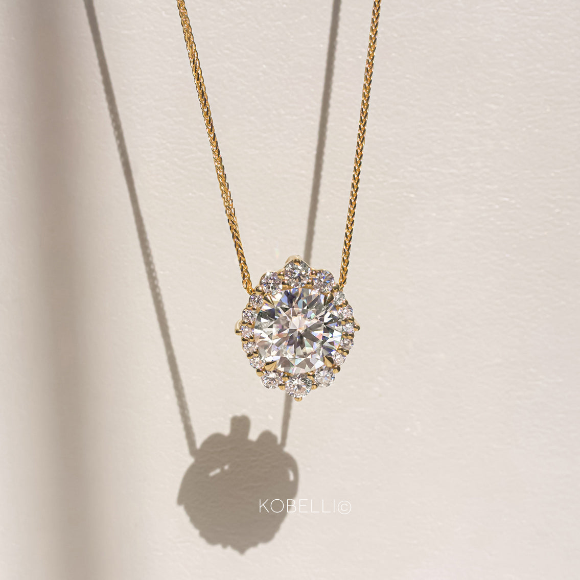 Raphaela Necklace - 3-3/4ct.tw Round Moissanite with Lab Grown Diamond Halo Pendant and Chain